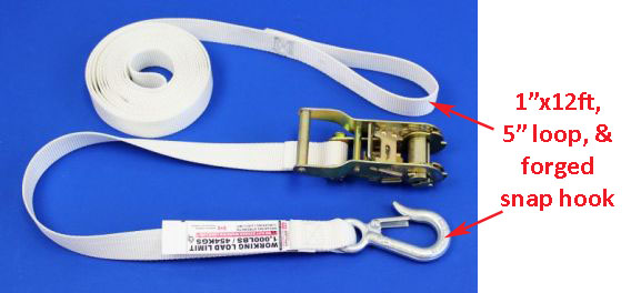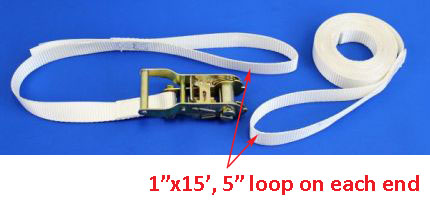 | RS12415-L-W | 1″ X 15 FT Ratchet strap with 5″ loops on each end | 1,500 lbs |