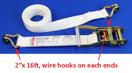 | RS21816-WXL-WHT | 2″ X 16 FT ratchet strap with wire hooks on each end | 3,335 lbs |